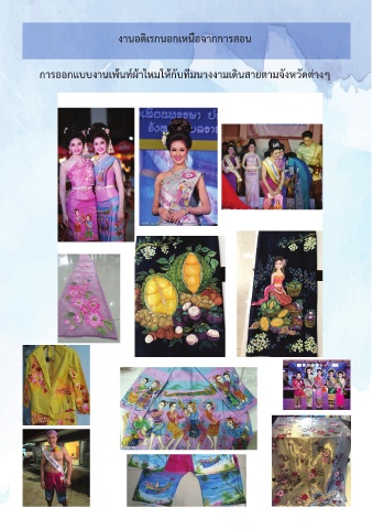 งานอดิเรกนอกเหนือจากการสอน การออกแบบงานเพ้นท์ผ้าไหมให้กับทีมนางงามเดินสายตามจังหวัดต่างๆ