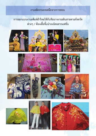งานอดิเรกนอกเหนือจากการสอน การออกแบบงานเพ้นท์ผ้าไหมให้กับทีมนางงามเดินสายตามจังหวัด ต่างๆ / ห้องเสื้อชั้นนำาลงนิตยสารแฟชั่น