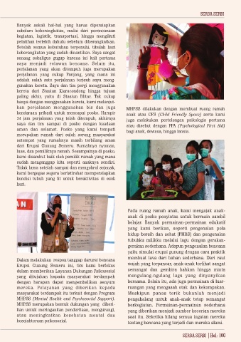 kendaraan pribadi untuk mencapai posko. Hampir anak atau CFS (Child Friendly Space) serta kami