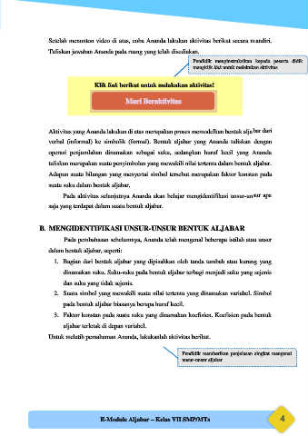 B. MENGIDENTIFIKASI UNSUR-UNSUR BENTUK ALJABAR