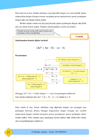 bentuk aljabar. Perlu Ananda ingat, pembagian bentuk aljabar tidak selalu habis dibagi