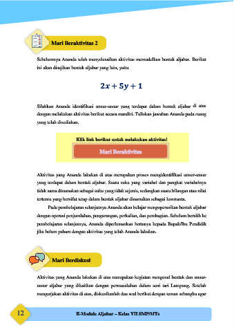 12 E-Module Aljabar – Kelas VII SMP/MTs