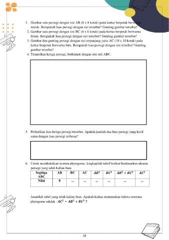 5. Perhatikan luas ketiga persegi tersebut. Apakah jumlah dua luas persegi yang kecil