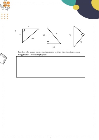 Tentukan nilai x pada masing-masing gambar segitiga siku-siku diatas dengan