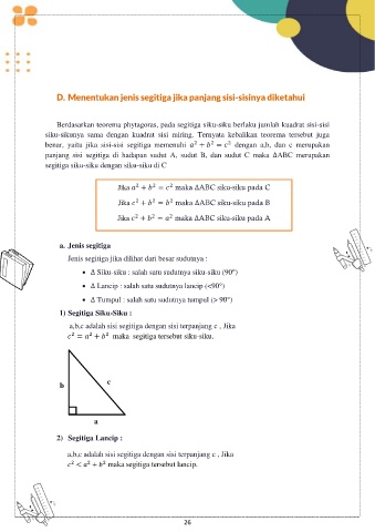 benar, yaitu jika sisi-sisi segitiga memenuhi dengan a,b, dan c merupakan