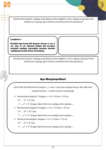 Isilah titik-titik dibawah ini dengan <, =, atau > dan jenis segitiga lancip, siku-siku atau