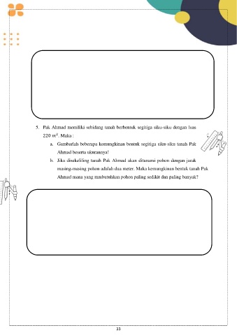5. Pak Ahmad memiliki sebidang tanah berbentuk segitiga siku-siku dengan luas