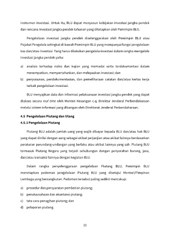 Pengelolaan investasi jangka pendek diselenggarakan oleh Pemimpin BLU atau
