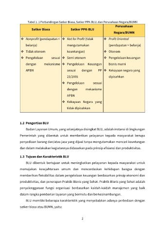 Tabel 1. 1 Perbandingan Satker Biasa, Satker PPK-BLU, dan Perusahaan Negara/BUMN
