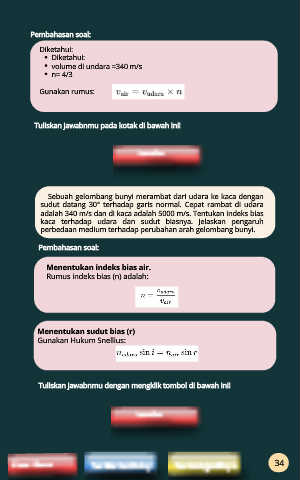 adalah 340 m/s dan di kaca adalah 5000 m/s. Tentukan indeks bias