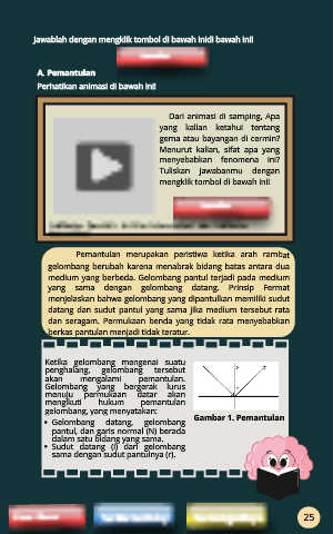 menjelaskan bahwa gelombang yang dipantulkan memiliki sudut