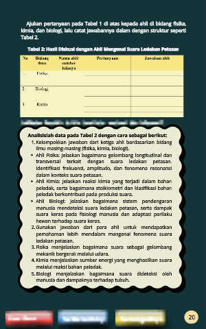 Ajukan pertanyaan pada Tabel 1 di atas kepada ahli di bidang fisika,
