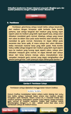 Pembiasan cahaya dijelaskan menggunakan Hukum Snellius: