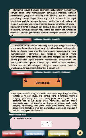 1. Pada percobaan Young, dua celah dipisahkan sejauh 0,5 mm dan