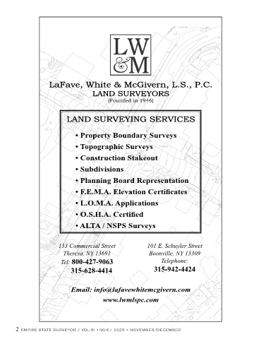2 EMPIRE STATE SURVEYOR / VOL. 61 • NO 6 / 2025 • NOVEMBER/DECEMBER