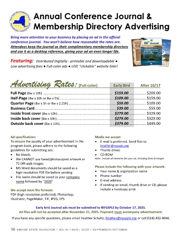Early bird Journal ads must be submitted to NYSAPLS by October 17, 2025.
