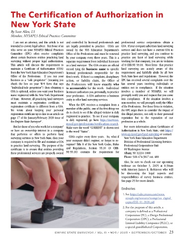 EMPIRE STATE SURVEYOR / VOL. 61 • NO 5 / 2025 • SEPTEMBER/OCTOBER   23