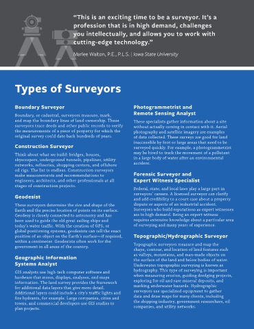 and map the boundary lines of land ownership. These These specialists gather information about a site