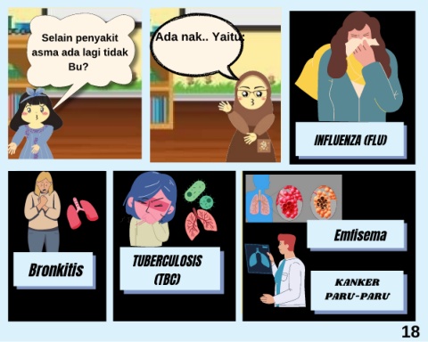 Selain penyakit Ada nak.. Yaitu: asma ada lagi tidak Bu? INFLUENZA (FLU) Emfisema TUBERCULOSIS Bronkitis (TBC) KANKER PARU-PARU 18