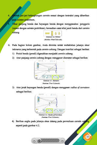 4. Aturlah jari-jari kelengkungan cermin sesuai dengan instruksi yang diberikan