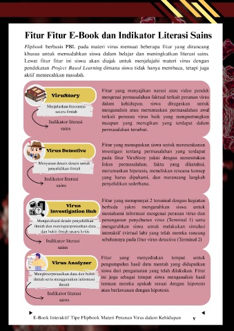 Flipbook berbasis PBL pada materi virus memuat beberapa fitur yang dirancang