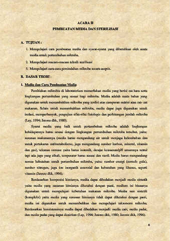1. Mempelajari cara pembuatan media dan syarat-syarat yang dibutuhkan oleh suatu