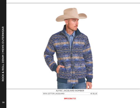 ROCK & ROLL DENIM | MEN’S OUTERWEAR 58 AZTEC JACQUARD BOMBER 100% COTTON JACQUARD 45 BLUE BM92C06733