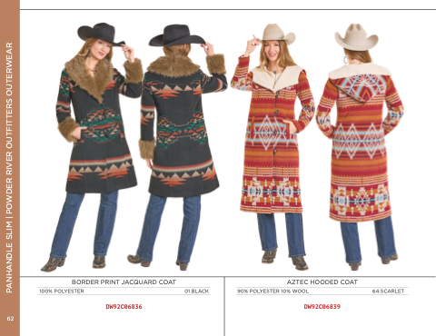 PANHANDLE SLIM | POWDER RIVER OUTFITTERS OUTERWEAR 62 BORDER PRINT JACQUARD COAT AZTEC HOODED COAT 100% POLYESTER 01 BLACK 90% POLYESTER 10% WOOL 64 SCARLET DW92C06836 DW92C06839