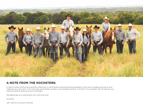 In light of recent tariff announcements, Westmoor is committed to doing everything possible to limit cost increases and look at such