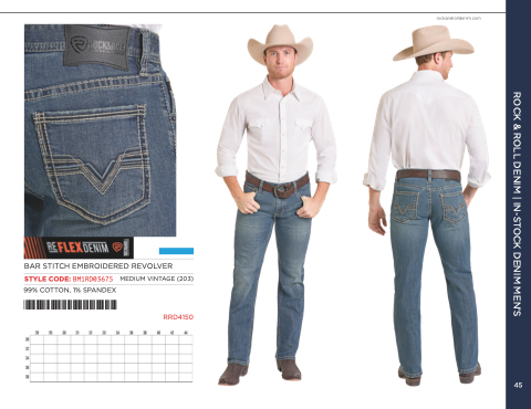 rockandrolldenim.com BAR STITCH EMBROIDERED REVOLVER STYLE CODE: BM1RD03675 MEDIUM VINTAGE (203) 99% COTTON, 1% SPANDEX *BM1RD03675* RRD4150 ROCK & ROLL DENIM | IN-STOCK DENIM MEN’S 45