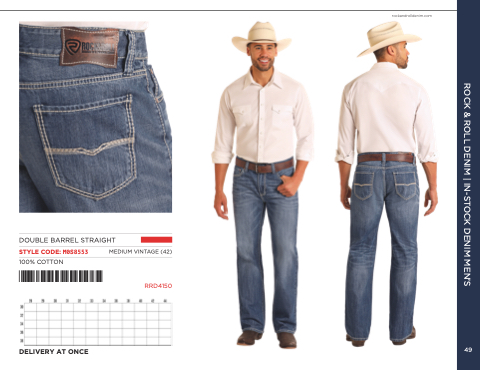 rockandrolldenim.com DOUBLE BARREL STRAIGHT STYLE CODE: M0S8553 MEDIUM VINTAGE (42) 100% COTTON *M0S8553* RRD4150 DELIVERY AT ONCE ROCK & ROLL DENIM | IN-STOCK DENIM MEN’S 49