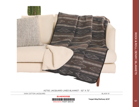 AZTEC JACQUARD LINED BLANKET - 52” X 72”