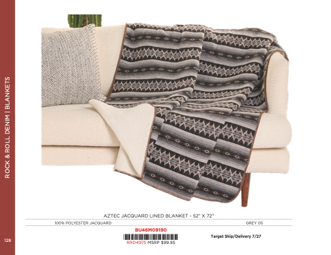 AZTEC JACQUARD LINED BLANKET - 52” X 72”