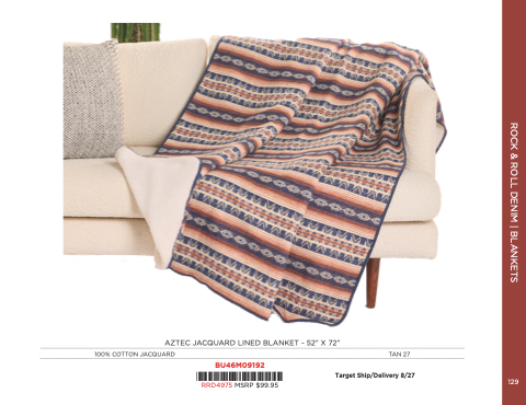 AZTEC JACQUARD LINED BLANKET - 52” X 72”