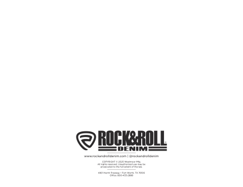 www.rockandrolldenim.com | @rockandrolldenim COPYRIGHT © 2025 Westmoor Mfg. All rights reserved. Unauthorized use may be prosecuted to the full extent of the law. 4901 North Freeway • Fort Worth, TX 76106 Office: 800-433-2888