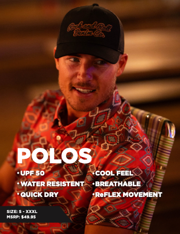POLOS UPF 50 WATER RESISTENT QUICK DRY SIZE: S - XXXL MSRP: $49.95 COOL FEEL BREATHABLE ReFLEX MOVEMENT