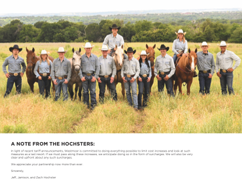 In light of recent tariff announcements, Westmoor is committed to doing everything possible to limit cost increases and look at such