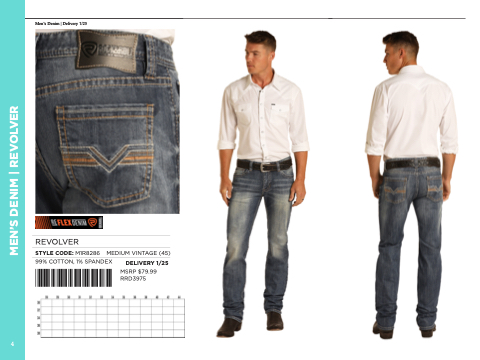 4 Men’s Denim | Delivery 71/25 REVOLVER STYLE CODE: M1R8286 MEDIUM VINTAGE (45) 99% COTTON, 1% SPANDEX *M1R8286* DELIVERY 1/25 MSRP $79.99 RRD3975 MEN’S DENIM | REVOLVER