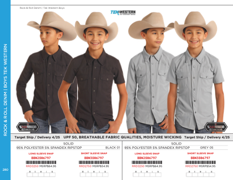 Target Ship / Delivery 4/25 UPF 50, BREATHABLE FABRIC QUALITIES, MOISTURE WICKING