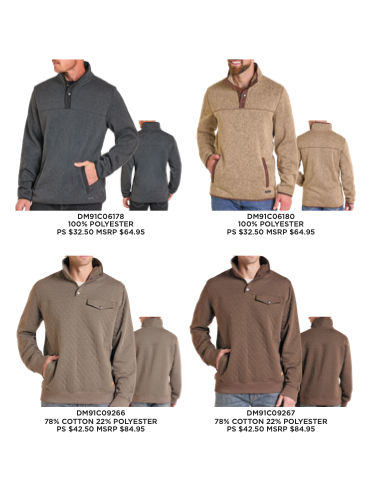 DM91C06178 DM91C06180 100% POLYESTER 100% POLYESTER PS $32.50 MSRP $64.95 PS $32.50 MSRP $64.95 DM91C09266 DM91C09267 78% COTTON 22% POLYESTER 78% COTTON 22% POLYESTER PS $42.50 MSRP $84.95 PS $42.50 MSRP $84.95