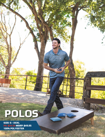 POLOS SIZE: S - XXXL PS: $24.50 MSRP: $49.95 100% POLYESTER