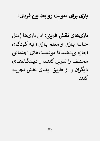 : یزاب یدرف یب بباور تیوقت یارب لثم( اه یزاب نیا : نیرفآ قن یاه یزاب نا کدوک ه ب )یزا ب ملعم و یزا ب ه لا خ عیا متجا یا ه ت یعقوم ا ت د نهد م هزا جا یا ه ها گد ید و د ننک نیرمت ار فلتخم ه برجت شقن یا فیا قیرط زا ار نارگید دننک . 71