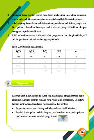 Tabel 2. Pembiasan pada prisma.