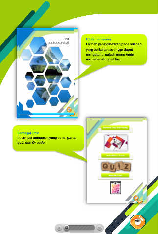Uji Kemampuan Latihan yang diberikan pada subbab yang berkaitan sehingga dapat mengetahui sejauh mana Anda memahami materi itu. Berbagai Fitur Informasi tambahan yang berisi game, quiz, dan Qr code. 9 viii