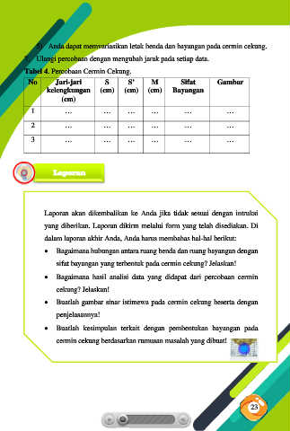 Tabel 4. Percobaan Cermin Cekung.