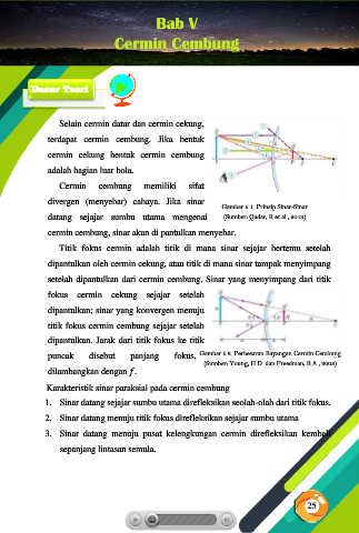 dipantulkan oleh cermin cekung, atau titik di mana sinar tampak menyimpang