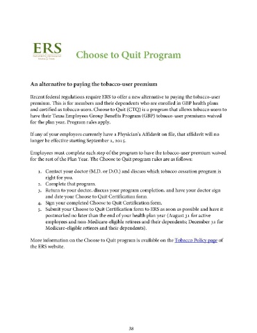 and certified as tobacco users. Choose to Quit (CTQ) is a program that allows tobacco users to