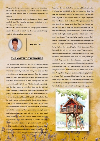 Usage of anything much more than required may cause trou- house and the tree itself. They also put ladders to climb the