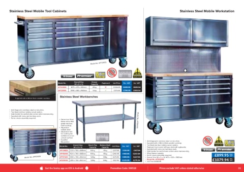 AP1560SS 1520 x 760 x 865mm 100kg 45kg £242.95 £169.95 £203.94 • 45kg Drawer capacity. EXC.