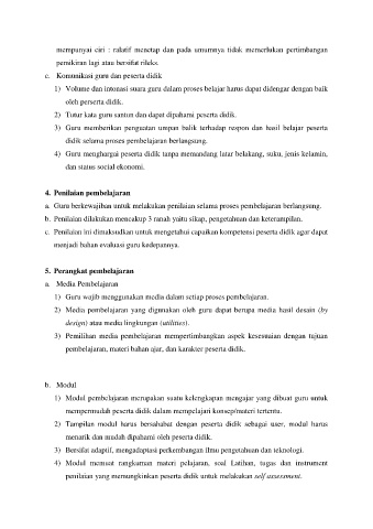 pembelajaran, materi bahan ajar, dan karakter peserta didik.